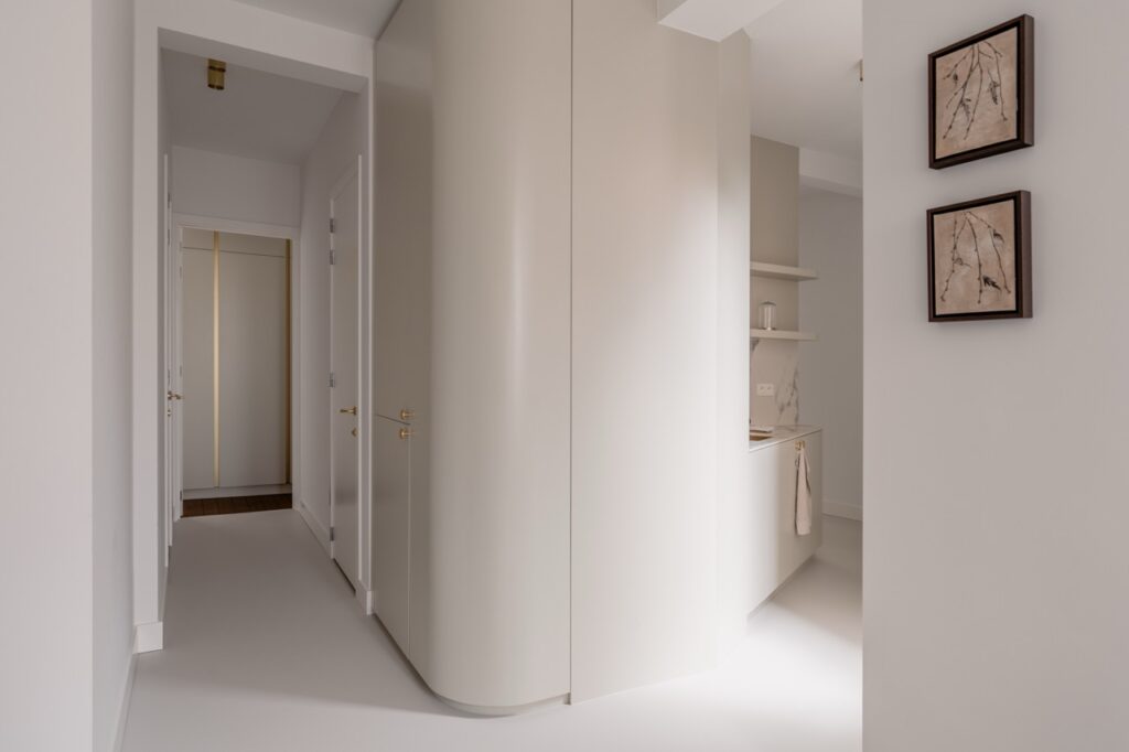 This interior design of this third-floor apartment in Antwerp’s Wilde Zee reconfigures existing spaces to maximize natural light and frame key views, including the Boerentoren. The new layout improves circulation and spatial quality, thoughtfully integrated within the apartment’s historic context.